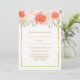 Ouro, coral, pêssego e convites cor-de-rosa do