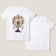 Árvore ouro da Vida com Pedras Vermelhas - design de arte espiritual sobre fundo laranja. Uma magnífica árvore ouro da vida com um tronco escuro curvo e ramificações de serpentina. As pedras vermelhas nas pontas dão à árvore uma aura luxuosa, enquanto três pingentes decorativos em azul, amarelo e vermelho adicionam harmonia. O fundo laranja texturizado enfatiza o simbolismo espiritual da força, crescimento e energia.
