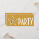 Design moderno com ouro "brilhante" e estrela branca sobre fundo amarelo escuro. Convite com um design personalizável para personalizar com seu próprio texto, imagens e ideias. Note que esta é uma imagem impressa criada usando fotografias originais e técnicas digitais, que ela não brilha ou contém faíscas reais.