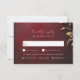 RSVP em estilo com esta placa de resposta de Bola de Mascarada. O design luxuoso apresenta um fundo vermelho intricadamente texturizado, enfeitado com falso efeito de falso ouro 3D, criando um espantoso Mardi Gras e o tema do casamento de fantasia.