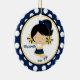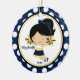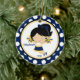 O grupo azul & amarelo bonito datado dos enfeites de natal da menina dos aplausos do cheerleader em uma polca azul & branca pontilhou o fundo. Um presente do Natal da maravilha sure a ser estimado por muitos próximos anos.