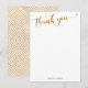 Aqui está uma escolha festiva para as necessidades do seu cartão de agradecimento de casamento. Sobre um fundo branco (a cor pode ser alterada para qualquer uma que você preferir), eu coloquei uma tipografia que diz "obrigado" apresentando uma fonte de letra elaborada e decorada com corações. O gráfico foi então sobreposto com um efeito de dourado falso liso. Uma tonalidade dourada correspondente foi usada para renderizar seu nome ou mensagem pessoal na parte inferior. Todas as camadas estão desbloqueadas para permitir todo o posicionamento e controle de tamanho que você desejar. A parte traseira foi coberta com um padrão festivo e repetitivo de quadrados dourados falsos aninhados e girados na diagonal.