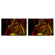 Imagem com curvas amareladas e vermelhas que se assemelham a material dobrado com tons claros em algumas partes e escuras em outras, lembrando algum material brilhante como metal ou tecido sedoso.