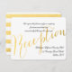 Elegante Glamour em Folha de Ouro | Convites de Recepção de Casamento - Layout Horizontal. Desenho de Elke Clarke©. Outros estilos e cores disponíveis em nossa loja www.zazzle.com/monogramgallery. Uma simples fonte manuscrita com a palavra "recepção" adorna este cartão de inserção de recepção de casamento clássico, porém moderno. O texto é totalmente personalizável. O padrão listrado em ouro e branco no verso pode ser removido ou uma cor ou padrão diferente pode ser solicitado. Vem com envelope branco em branco. A folha de ouro é um efeito de foto impressa.