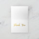 CARTÃO DE AGRADECIMENTO DE CASAMENTO EM OURO FALSO SIMPLES DOBRADO COM SUA FOTO. Design por Elke Clarke© Disponível em www.zazzle.com/monogramgallery. Envie sua mensagem de agradecimento de casamento como recém-casados para seus amigos e familiares usando este elegante cartão de agradecimento de casamento com as palavras "Obrigado" escritas em uma sobreposição de texto de tipografia moderna em folha de ouro (efeito de foto impressa). Substitua a foto de amostra pela sua. Adicione sua mensagem pessoal de agradecimento no verso ou deixe em branco e escreva sua mensagem à mão pessoalmente. Outras cores disponíveis.