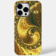 Linda espiral de ouro brilhante abstrato fractal com iniciais personalizadas, design artístico e rico iphone 14 pro max case