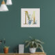 A imagem nítida permite que você altere o plano de fundo, se desejar. Eu carreguei um fundo piscado de pebolha para fins de visualização. Um elegante alfabeto ouro de fonte tradicional adornado com flores e folhas de cor-de-água azul graciosa e verde, disponível em todas as letras possíveis.