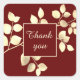 Romântico marrom-terra com ouro deixa obrigado seu adesivo quadrado para cartas chique, presentes elegantes, casamento clássico, e para belos aniversários e para pequenos negócios.