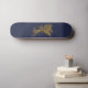 design decorativo de linearte de ouro de ascensão de pássaro fênix num skate de cor azul escura