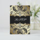 RSVP elegante para festa e evento com damasco preto e dourado. Tamanho conveniente de 3 1/2 x 5 polegadas funciona bem para RSVP, cardápio, direções, programa, cartões de recepção, etc. Basta adicionar seus detalhes na frente e no verso escolhendo o botão "Personalize!" para começar a adicionar os detalhes do seu evento, estilo de fonte, tamanho e cor da fonte e texto. Por favor, note que todos os desenhos de convite que você encontrará no Zazzle são gráficos impressos em papel simples sem joias, laços, relevos, dourados ou peças ou partes adicionais.