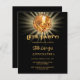Um convite de festas Quinceañera. Um fundo preto dedecorado com uma bola de disco ouro. Texto: Partido do Vamos! Personalize e adicione um nome e detalhes da parte. O nome é escrito com um script de estilo manuscrito. 1 folha = 1 convite impresso de borda a borda.