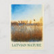 Capturar a calma beleza do campo da Letónia com este cartão-postal, ao estilo aquoso, com alto ouro a balançar na brisa de inverno, sob um céu azul e âmbar pacífico. Inspirada por paisagens reais, esta trabalho de arte é uma homenagem à elegância silenciosa da natureza letã. Perfeito para enviar pensamentos calorosos ou enquadrar como um pequeno pedaço da serenidade do Báltico.