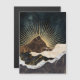 Um cartão de saudação ousado e moderno da paisagem abstrato, com uma ascensão radiante do nascer do sol do ouro atrás de montanhas em camadas texturizadas de mármore sob um céu estrelado e cintilante. A combinação de raios metálicos de ouro, tons cósmicos profundos e texturas naturais de pedra cria um design celeste e místico perfeito para um toque de elegância e inspiração.
