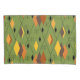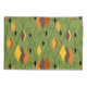 Esta fronha tem um design de diamantes moderno século médio de 1970, e estrelas em um campo de verde.