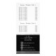Cartão de Lista de Preços e Produto. Ouros Brancos Elegantes em Preto e Branco prontos para você personalizar. ✔ Nota: Nem todas as áreas de modelo precisam ser alteradas. 📌 Se você precisar de mais personalização, clique no botão "Clique para Personalizar mais" ou "Personalizar ou Editar Design" e use nossa ferramenta design para redimensionar, girar, alterar a cor do texto, adicionar texto e muito mais. ⭐ Este Produto é 100% Personalizável. Gráficos e/ou texto podem ser adicionados, excluídos, movidos, redimensionados, mudados, rodados etc.. ⭐ 99% dos meus designs na minha loja são feitos em camadas. Isso facilita o redimensionamento e a movimentação de gráficos e textos para que cada produto seja ajustado perfeitamente. 📌 (Não se esqueça de redimensionar ou mover gráficos, se necessário, antes de fazer pedidos) Você também pode "TRANSFERIR DESIGN" em outros produtos Zazzle e ajustar o design para o ajustado na maioria dos itens do Zazzle. (botão no lado direito da página) Este design é feito com vetor de alta resolução e/ou gráficos digitais para um impressão profissional. 📌 NOTA: (ISTO É UM IMPRESSÃO. Todos os designs de produto Zazzle são "impressões", a menos que indicado em "Sobre este produto" no lado esquerdo desta página) A design será impressa "EXATAMENTE" como se vê na tela e no produto...portanto, certifique-se de que, ao fazer suas alterações no redimensionamento de qualquer dos gráficos ou textos que ele ajustado nas áreas corretamente, e que sua ortografia e texto seja como você gosta que seja em tamanho, cor e fonte. Se você tiver alguma pergunta sobre o "SOMENTE DESIGN" ou precisar de ajuda, entre em contato comigo no ✉ siggyscott@comcast.net ou visite o link da minha loja: https://www.zazzle.com/store/designsbydonnasiggy (Copiar e Colar) Eu terei todo o prazer em ajudar. 📌 TODAS AS OUTRAS QUESTÕES (remessa, reembolso, impressão, produto, etc.), entre em contato com a Zazzle ou com o ⭐ DIRETAMENTE ⭐. Obrigado pelo apoio e parada na minha loja - DesignsbyDonnaSiggy. © Donna Siegrist ⭐ ⭐ ⭐ ZAZZLE promete 100% de satisfação. Se você não o ama, Zazzle o devolverá! ⭐ ⭐ 1-888-8ZAZZLE (1-888-892-9953) Horário telefônico: Seg - Sex: 9H - 5PM (12PM - 8PM ET)