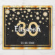 Um rótulo elegante, glamouroso e de vinho aniversário de 30 anos ou garrafa de vinho espumante. Brilhante preto com falso ouro e um quadro de ouro. Modelos para um nome, 30 anos e uma data. Data de nascimento ou data da festa/aniversário. Letras brancas e ouros coloridas. O nome é escrito com um script de estilo manuscrito.