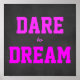Ousadia Motivacional para Sonhar Poster — alcance as estrelas e vá em busca dos seus sonhos ou lembre-se ou um amigo de fazer exatamente isso com esta poster de citação dos sonhos. "Atreva-se a Sonhar" a preto com letras rosa-quente. Inspiração e motivação — excelente para quartos, escritório, casa, ginástica e muito mais.