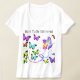 A borboleta roxa é o símbolo da consciência da fibromialgia. Esta camisa mostra uma borboleta roxa bonita que quebra longe do bloco, com a mensagem do "desafio para ser diferente."