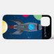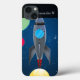 Dark night outer space sky with colorful and bright planets and white stars, with a silver rocket ship flying through the sky. Great for a little boys room for the guy who loves space and travel. All Designs Copyright © 2012 www.CuteComfy.com