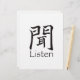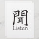 O símbolo Kanji japonês da palavra "Ouça" é mostrado em pinceladas de caligrafia e parece muito legal em uma camisa, bolsa, boné ou botão. Nós até adicionamos a tradução em inglês abaixo para que o pessoas receba a mensagem. O design do caractere é baseado em um gateway com um dentro de ouvido. Bonito legal! Você pode alterar a cor de fundo e adicionar texto também.