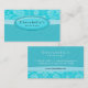O cartão de visita do salão de beleza para o prego ou o cabeleireiro ou os termas com teste padrão bonito floral/flor no damasco azul elegante e na moda e listras com nome da empresa oval borbulham.