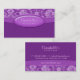 O cartão de visita do salão de beleza para o prego ou o cabeleireiro ou os termas com teste padrão bonito floral/flor no damasco roxo elegante e na moda e listras com nome da empresa oval borbulham.