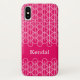 Uma capas de iphone de padrão branco-rosa-vermelha, oval e arte-de-linha. Personalize este item com seu próprio nome. Padrão original e design por Sarah Trett para www.mylittleeden.com no zazzle.
