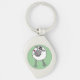 Um Chaveiro de efeito prateado divertido, com uma ovelha cômica segurando uma flor vermelha brilhante em sua boca, a partir de uma ilustração desenhada à mão por Judy Adamson. Você pode mudar o fundo verde se quiser.