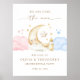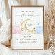 Celebrate your special reveal with this Over the Moon Gender Reveal Party Welcome Poster. Featuring a sweet crescent moon, smiling star, soft pink and blue clouds, golden stars, and a delicate baby bottle, this charming design sets a dreamy and elegant tone for your celebration. Perfect for greeting guests at your gender reveal, this customizable welcome sign adds a whimsical and heartfelt touch to your party decor.