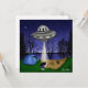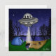 A mão desenhou arte alienígena. OVNI tentando raptar um homem acampando no lago na floresta.