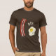Ovos e bacon, melhores amigos para sempre! O ovo bonito e o bacon cortam o sorriso e guardarar as mãos.