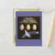 ovos de gaiolas azuis com amoras e penas em cartão postal