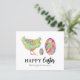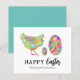 A Páscoa está aqui e é hora de celebrar novos começos. Este belo cartão de Páscoa moderno e econômico com galinha e ovos em aquarela é uma ótima maneira de espalhar a alegria da primavera com seus amigos e familiares. Envie saudações personalizadas de Páscoa para amigos e familiares usando o modelo personalizável e fácil de usar. Ilustrações únicas de galinha e ovos adoráveis e coloridos em cores vibrantes e brilhantes, obra de arte original da artista Catherine Sweetman.