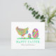 Compartilhe desejos alegres de primavera com este lindo cartão de cumprimentos de Páscoa com uma galinha em aquarela e ovos de Páscoa, uma maneira encantadora de celebrar a temporada com amigos e familiares. O doce design inspirado na fazenda apresenta uma adorável galinha pintada à mão e ovos coloridos em tons vibrantes e brilhantes de aquarela para um visual de Páscoa fresco, alegre e moderno.