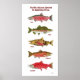 5 espécies de salmão encontradas no noroeste do Pacífico, comuns nas águas do Alasca. Cores d'água originais pelo artista da natureza Thom Glace