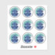 Pacote de Adesivos Árvore de Natal Azul Festivo Decorada. Árvore de Natal decorada em um quadro circular na cor azul.