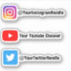 Pacote do Sticker de 3 instagram, youtube e Twitter, com nome de usuário de mídia social personalizado.