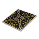 Design de azulejo de cerâmica luxuosa elegante com um padrão sem costura feito de formas geométricas de ouro falsas sobre fundo preto.
