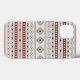Padrão de motivos mistos asteca em detalhes de cor azul, vermelho-burlu, preto e creme em um design de fundo de cor creme.
