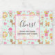 Etiquetas de garrafas de chá de fraldas com um padrão caprichoso que inclui uma coleção de brinquedos e animais deliciosos para crianças.
