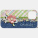 Coral, cor-de-rosa contemporâneo, azul, violeta-púrpura, taruga aqua, padrão amarelo, verde-menta e xadrez diagonal de tartã branca, fita de verde limão com polkadots brancos e praça floral romântica pastel num fundo azul de jeans negras. Com espaço para personalizar ou personalizar com nome, monograma ou iniciais de sua escolha. Belo, moderno e legal cobrir para o motif motif motif motif motif motif motif motif, experiente e amante da arte, que quer proteger seu telefone de poeira e sujeira, visto e lágrimas. Este design está disponível para o Apple iPhone 6, 7 e 8 Plus, 10 ou X, XR, XS, 11, 12 e 13 Mini e 14 Máx. capas de celulares Pro. Mostre seu estilo pessoal, veja a moda da moda e sinta na moda com um design único em um acessório de dispositivo móvel de sua escolha.