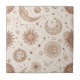 Elegante azulejo cerâmico com padrão botânico celestial apresentando luas, estrelas, planetas, olhos místicos e delicados ramos folhosos em um estilo minimalista preto e creme. Ideal para amantes da astrologia, buscadores espirituais, entusiastas da natureza e qualquer pessoa que ame a estética celestial boho.