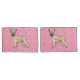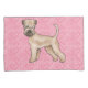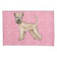 A ilustração original do desenho de Destei de um adorável cão da raça Terrier, revestido com molho, com tema de amor, com um fundo de padrão de corações cor-de-rosa.