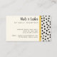 Um cartão de visita Dalmático com pontos pretos sobre fundo creme e um pop de amarelo-mostarda.