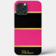 Adicione seu telefone com um gabinete elegante com listras preto e rosa contemporâneas. Linhas de ouro elegantes dividem as cores, melhorando a sofisticação do design. Personalize-o com seu nome, monograma ou qualquer texto que você preferir. Como alternativa, você pode optar por uma aparência elegante removendo o nome da amostra.