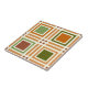 Design de padrão dos quadrados retrorreflectores em tons laranja e verde.