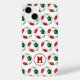 Esta capas de iphone temática de futebol divertido apresenta um padrão simples de bolas de futebol que têm painéis vermelhos, verdes e brancos num fundo branco personalizável - personalizar com o monograma do atleta - por katz_d_zynes