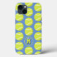 Esta capas de iphone de tênis das garotas bonitas apresenta um padrão simples de bolas de tênis amarelas / verdes brilhantes em um fundo azul de giro - personalizar com seu monograma - por katz_d_zynes