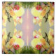 O belo padrão do HomeWare neste grande Azulejo cerâmico foi feito a partir de uma fotografia original de orquídeas amarelas à luz do sol da tarde. As flores das orquídeas têm pétalas amarelas claras com centros vermelhos a roxos. Um caule verde-escuro sopra pelo centro das flores. O fundo pastel é feito de tons de mistura rosa em verde-claro. Algumas folhas verdes claras de uma planta única podem ser vistas em um canto. Quando a foto é combinada para fazer o padrão, o design floral torna-se um jardim de orquídeas com o brilho rosa do sol da tarde no centro.