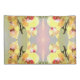 O lindo padrão do HomeWare neste conjunto de travessuras foi feito a partir de uma fotografia original de orquídeas amarelas à luz do sol da tarde. As flores das orquídeas têm pétalas amarelas claras com centros vermelhos a roxos. Um caule verde-escuro sopra pelo centro das flores. O fundo pastel é feito de tons de mistura rosa em verde-claro. Algumas folhas verdes claras de uma planta única podem ser vistas em um canto. Quando a foto é combinada para fazer o padrão, o design floral torna-se um jardim de orquídeas com o brilho rosa do sol da tarde no centro.